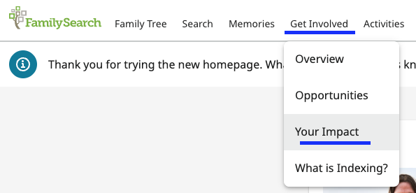 Get Involved / Your Impact- Familysearch.org shows records you helped with, and when someone else got their name to a temple.
